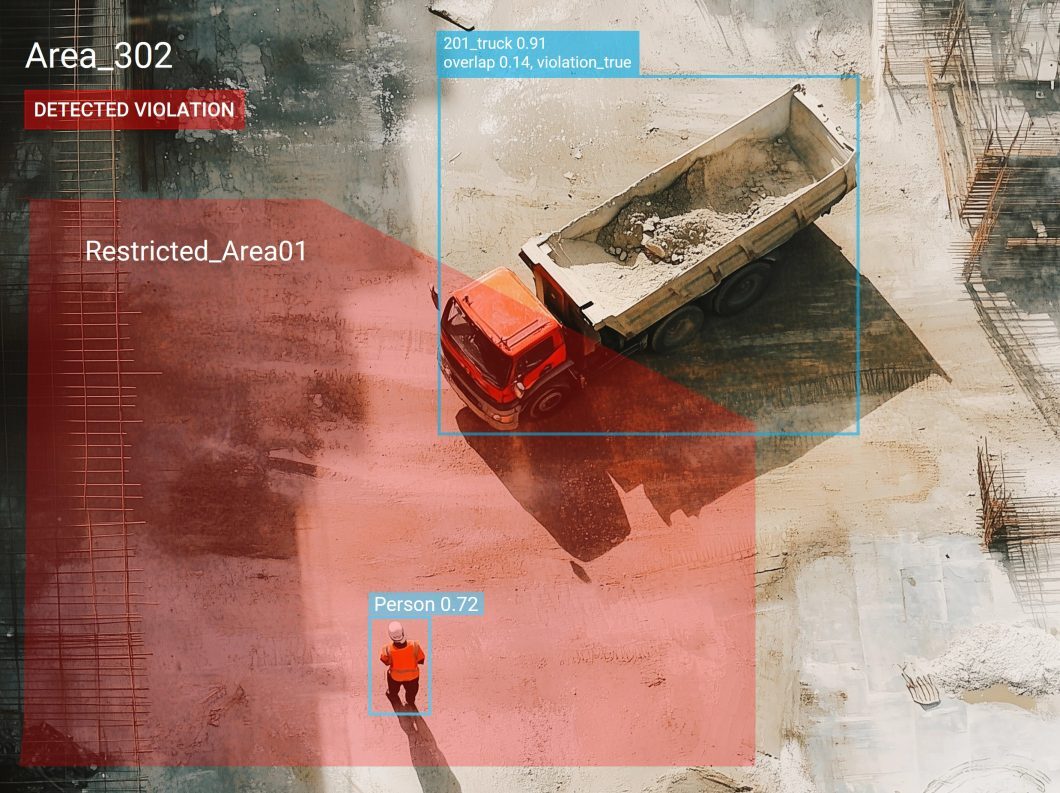 Детекция спецодежды, касок, позы человека, дым-огонь, нахождения в опасных зонах, пересечение линий периметра